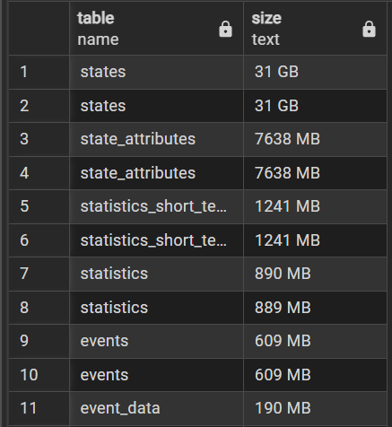 Det hjalp gevaldigt, men jeg synes stadigvæk det tog lang tid at indlæse energy dashboard, hvis jeg ville have data for flere måneder osv. Derfor har jeg nu besluttet at migrere til PostgreSQL – og holy fucking shit det går stærkt. Jeg har stadigvæk omkring 150 millioner rækker i min database, men se lige hvor hurtig den er: