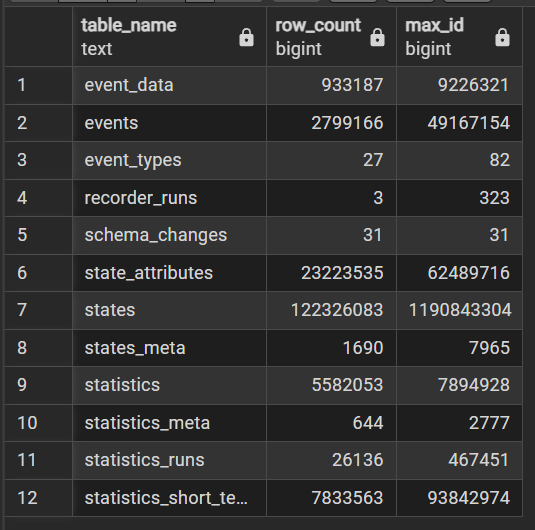 Antal rækker og største ID for primary key tilpasset til Home Assistant
